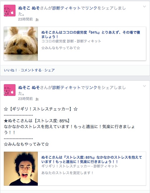 ふぇいすぶっくのほうでやったんだけどね、こういうおもちゃ的な診断系って信じてなかったのよ。脳内メーカーとかね、あったじゃない?