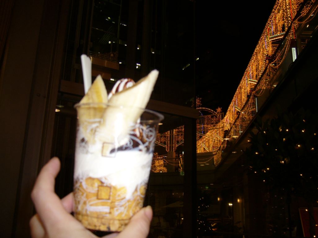 吹き抜けの地下フロアで震えながら食べるアイスは旨いっっっっ!!!