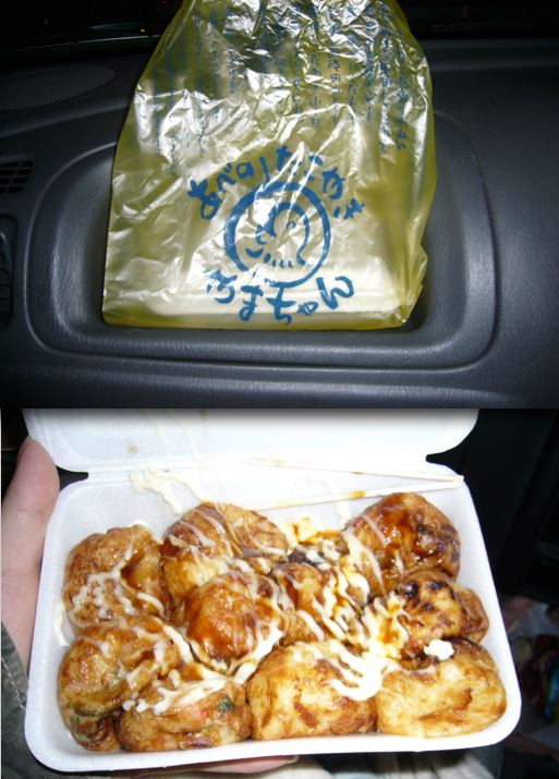 たこ焼き片手に車に乗り込んで、はふはふいいながら食べます。